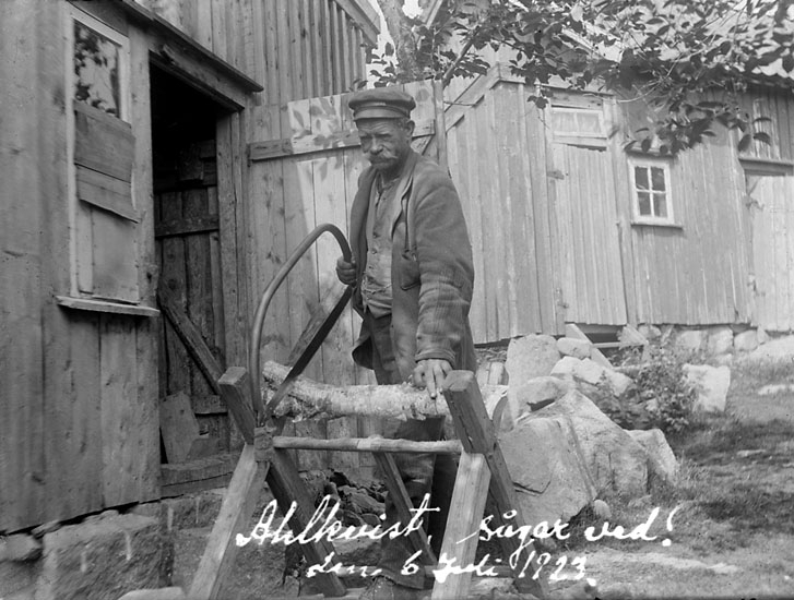 Enligt noteringar: "Ahlkvist, sågar ved ! 6 juli 1923."