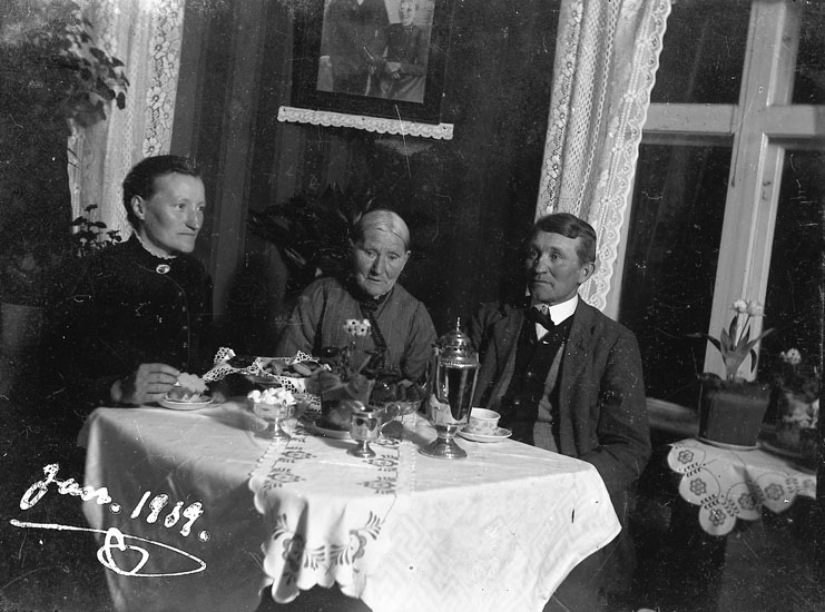 Enligt notering: "Vid kaffebordet, jan 1919, Gerda, Johan Jacobsson, Vidingen".