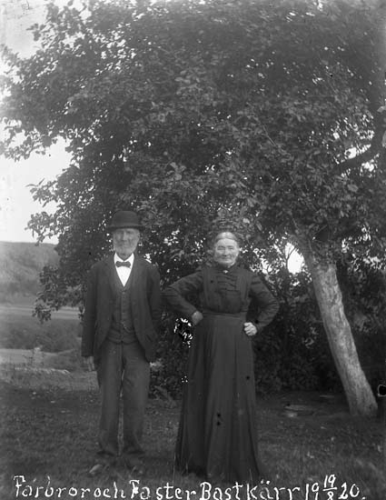 Enligt text skriven på glasplåten: "Farbror och faster Bastkärr 19-8-1920".
