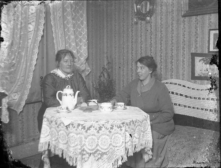 Enligt notering: "Två kvinnor vid kaffebordet".