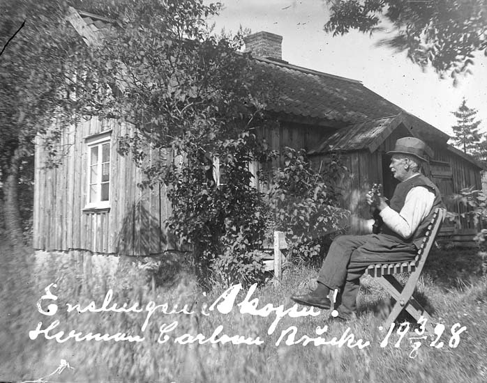 Skrivet på bilden: "Enslingen i Skogen! Herman Carlsson Bräcke 3/8 1928."