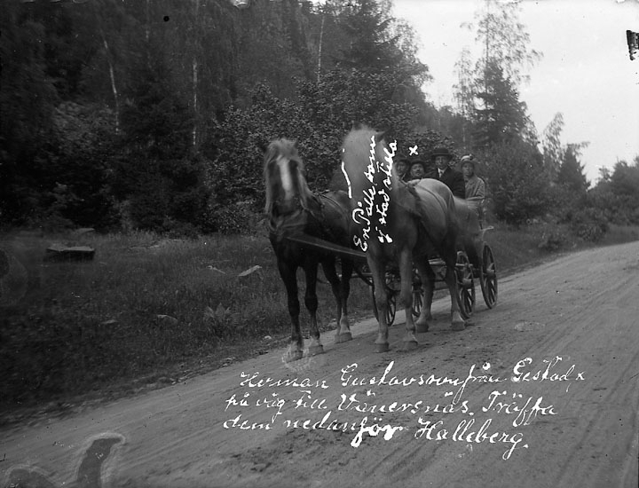 Enligt text på fotot: "Herman Gustavsson från Gestad x En Pålle som ej stod stilla x, på väg till Vänersnäs. Träffa dem nedanför Halleberg".