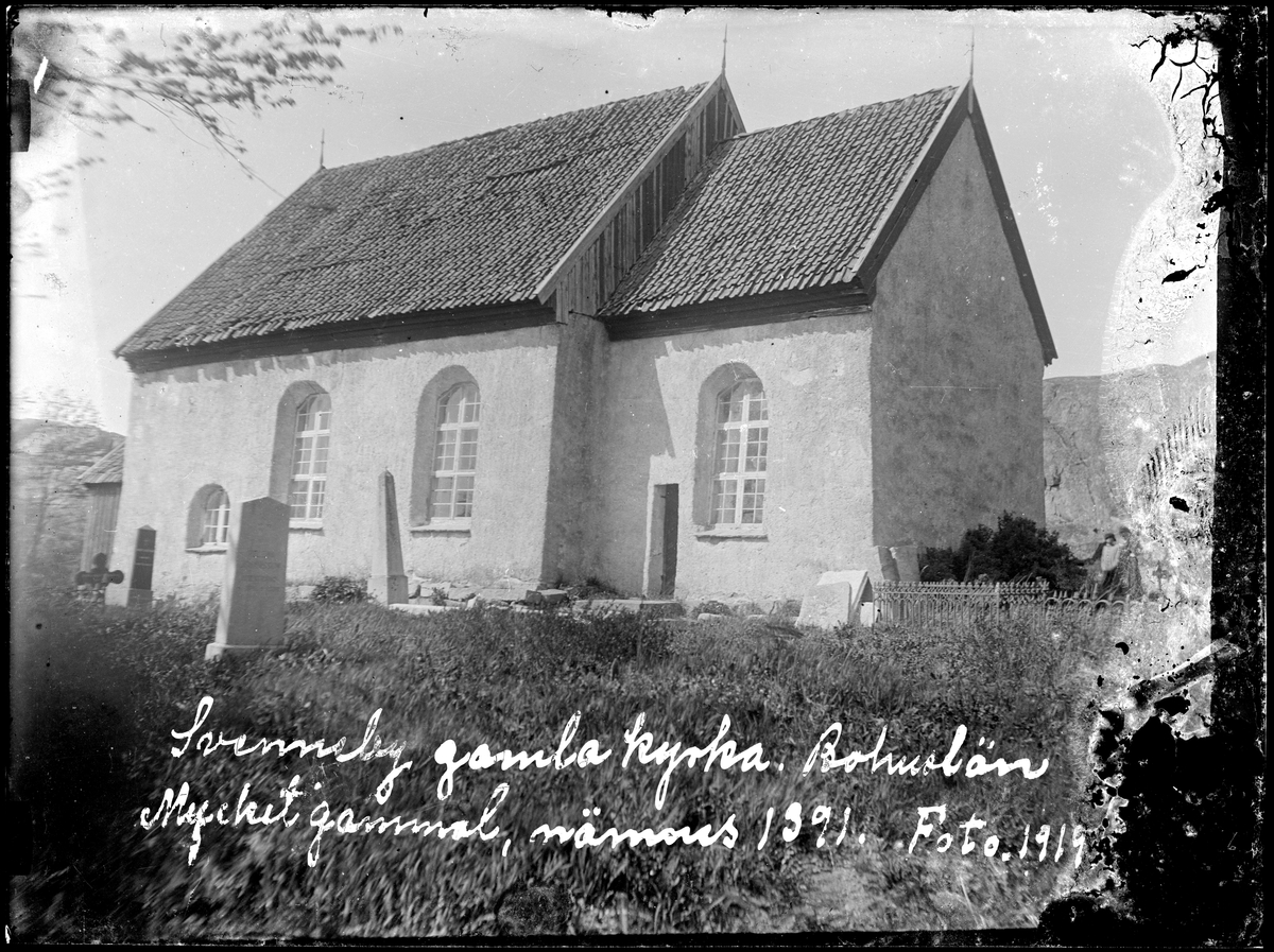 Enligt notering: "Svenneby gamla kyrka. Bohuslän. Mycket gammal, nämns 1391.. Foto 1919".