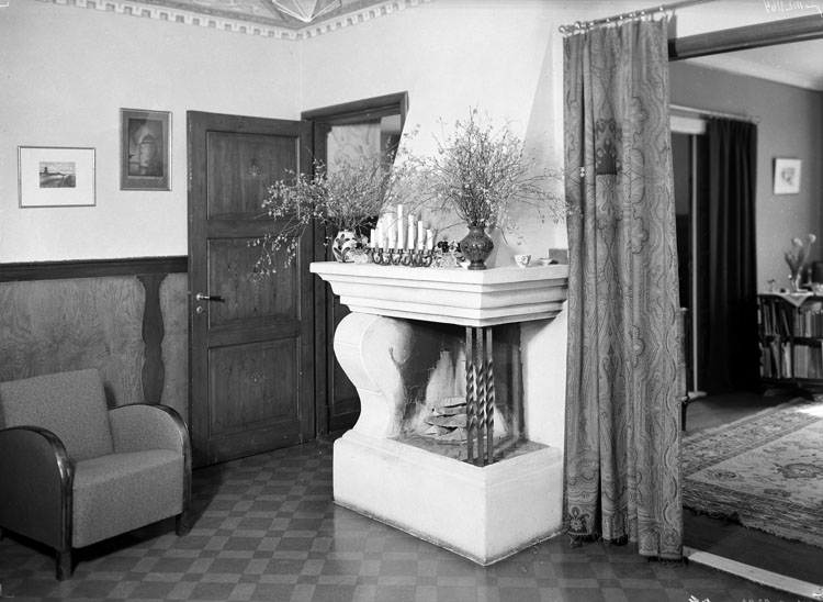 Uppgift enligt fotografen: "Uddevalla. Interiör fru Toni Wikborgs hem Ådalsgatan 4."