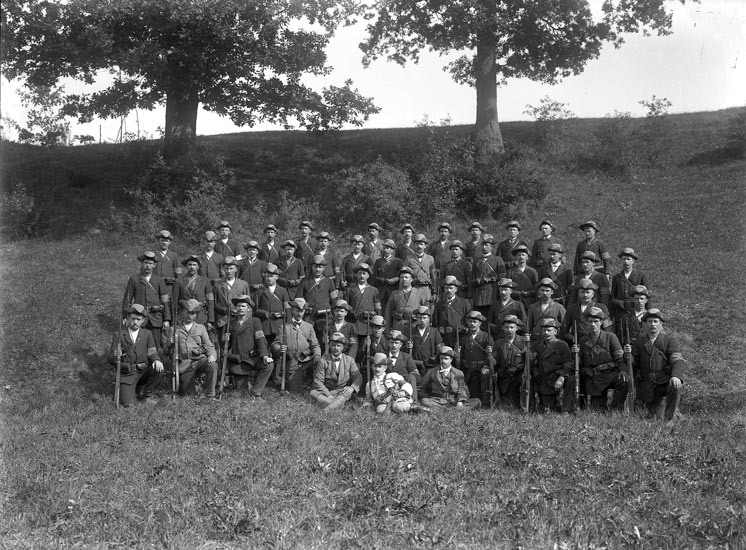 Enligt fotografens noteringar: "Landstorm vid Karl.12 skanssar. Kvistrum."