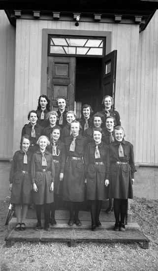 Enligt fotografens noteringar: "1938. 17. Flickscouter Munkedal".