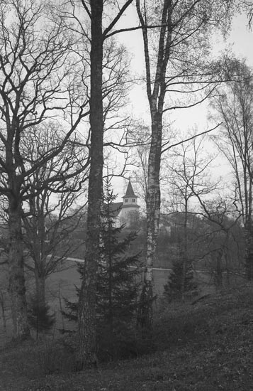 Titel: Enligt fotografens noteringar: "Taget omk. år 1940. Foss Kyrka från Prästgården".