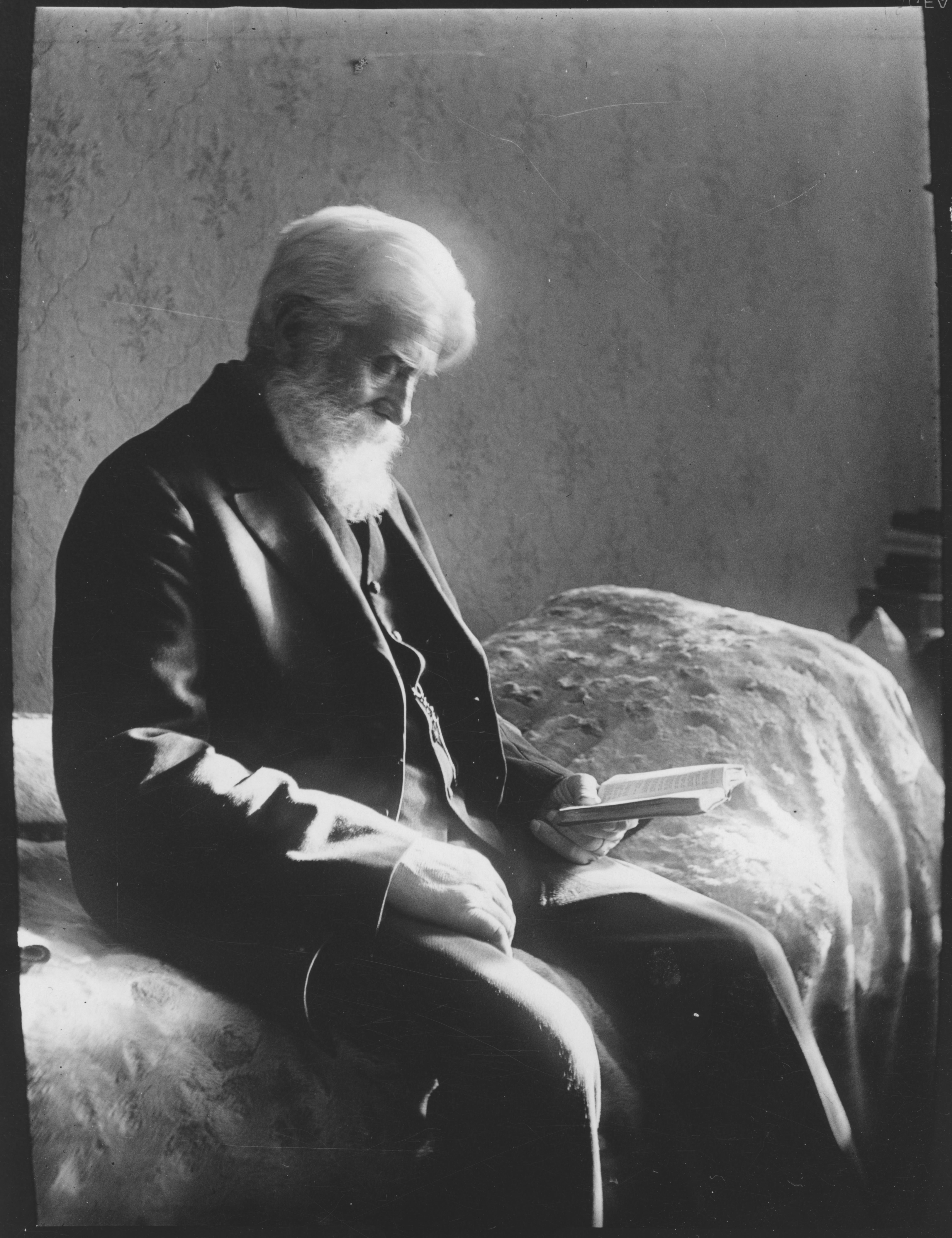 Den gamle värmlänningen Alfons Svensson, som sitter på en säng och läser en bok.