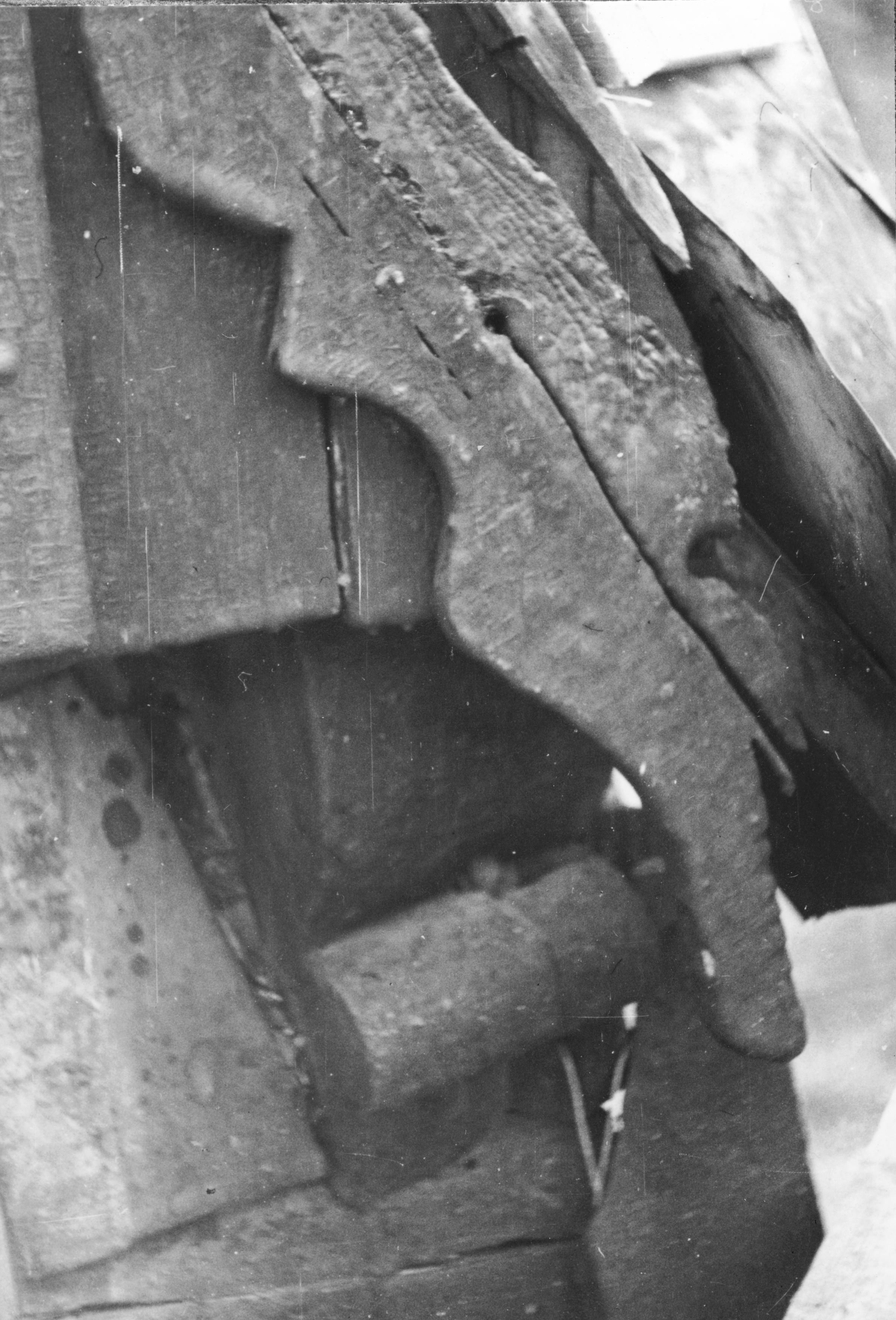 Klockstapeln, norra gavelröstets ö. vindskiva med rest av drakhuvud.