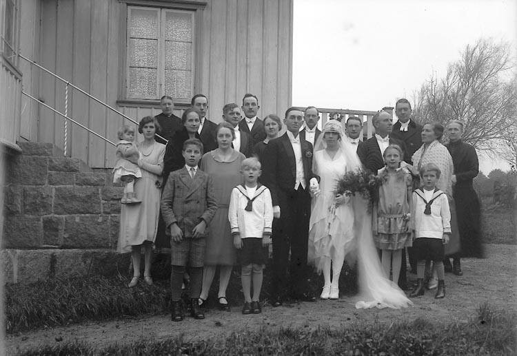 Enligt fotografens journal nr 5 1923-1929: "Karlsson, Oskar Näs Ödsmål i bröllopsgården".