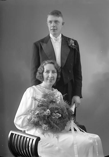 Enligt fotografens journal nr 6 1930-1943: "Olsson, Brudpar (Karin) Ödsmål".