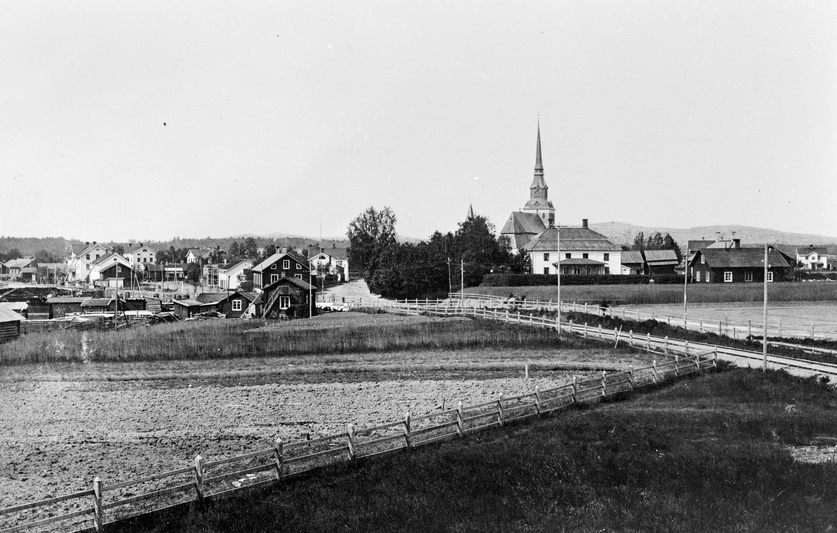 Beskrivning: Kyrkan med omgivningar. Foto för tidningen Hemmet.