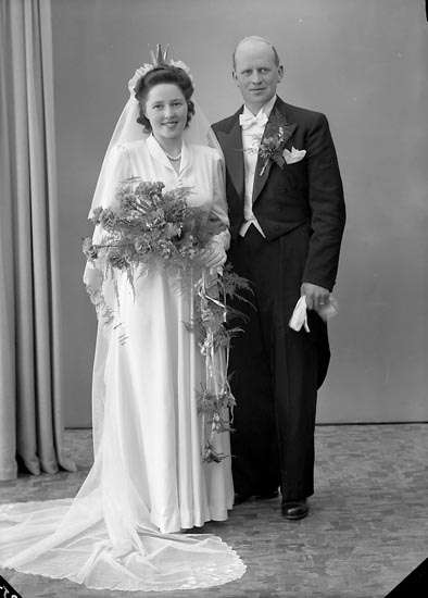 Enligt fotografens journal nr 7 1944-1950: "Larsson, Brudparet Brattorp Svanesund".
