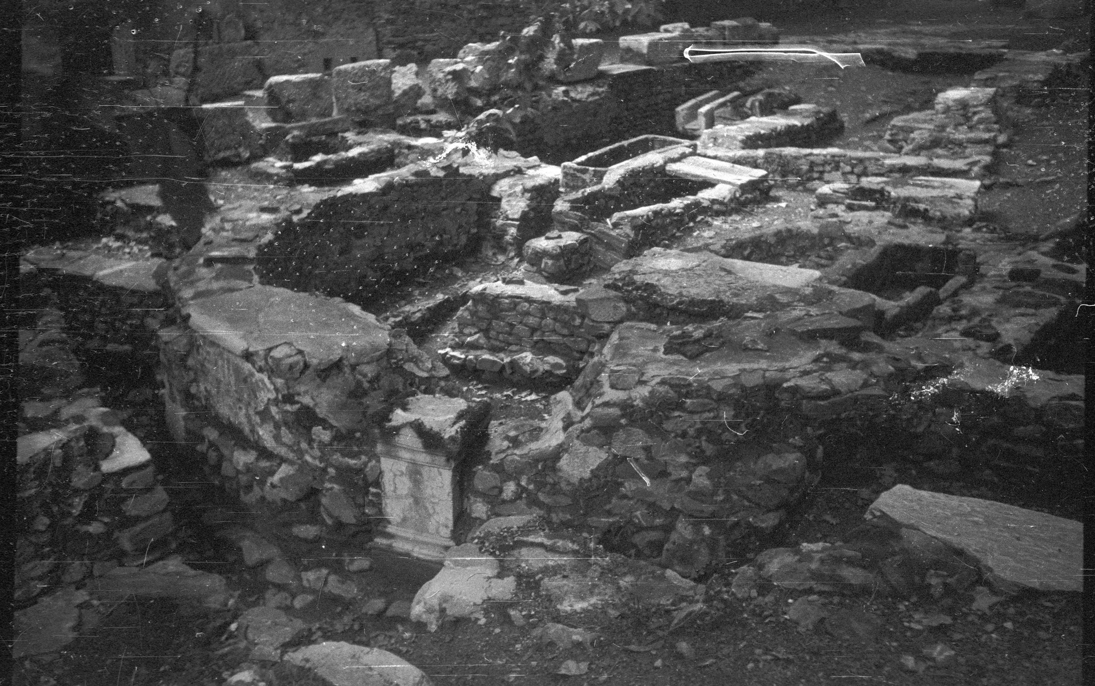 Klostret Abbaye de Saint-Maurice d'Agaune. "Utgrävning vid klosterkyrkan". Kanton Valais.
