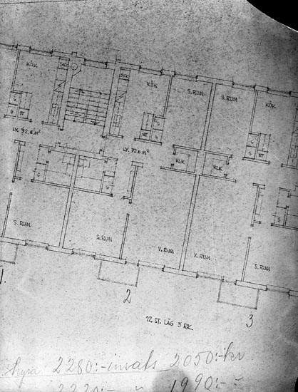 Enligt fotografens journal nr 8 1951-1957: "Enander, Karta över lägenhet i Fastigheten "Svanen", Stenungsund".