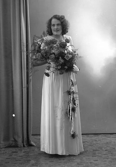 Enligt fotografens journal nr 7 1944-1950: "Pettersson, Herr Ivar Bleket bruden".