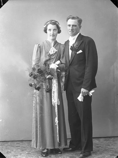 Enligt fotografens journal nr 6 1930-1943: "Abrahamsson, Edvin Bräcke Ödsmål brudpar".