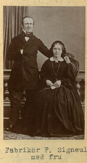Text på kortets baksida: "Fabrikör Fredrik Signeul med fru".