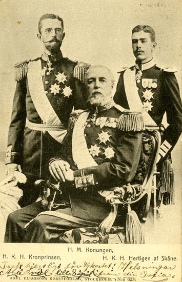 Notering på kortet: H. M. Konungen. H. K. H. Kronprinsen. H. K. H. Hertingen af Skåne.