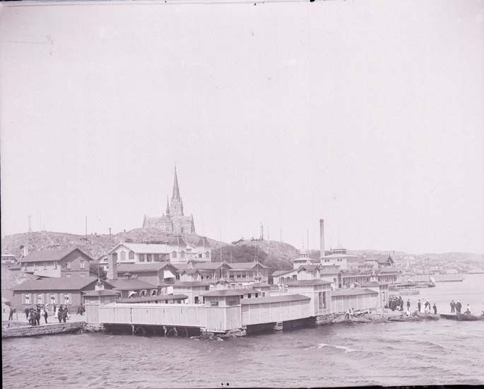 Enligt text som medföljde bilden: "Badhuset, kappseglingsdag."