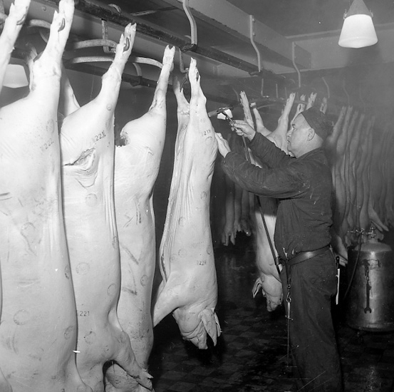 Julgrisslakt på Västra Sveriges Slakteriförening (V.S.S. eller VSS) Uddevalla den 10 december 1956.