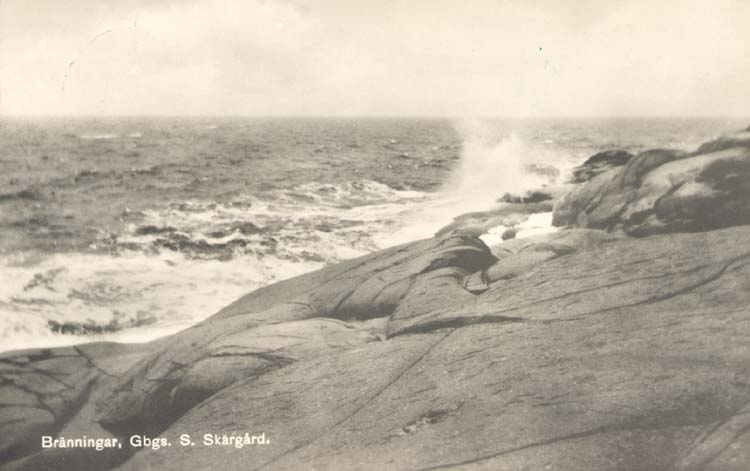 Tryckt text på kortet: "Bränningar, Gbgs. s. Skärgård."