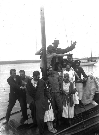 Enl. text i blå bok: "Flera personer på däck, koster"