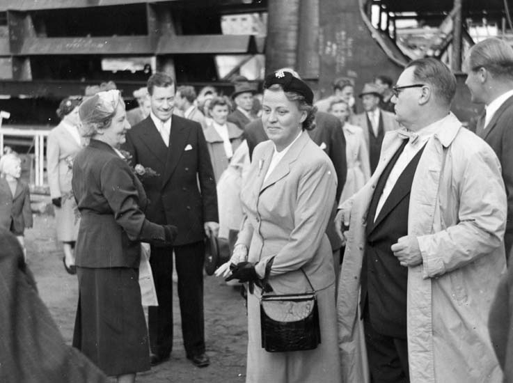 Publik inför dop och sjösättning av 114 M/S Hjördis Thordén.