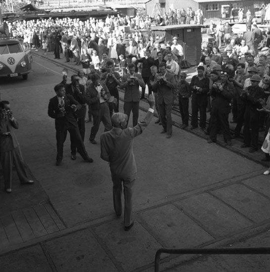 Dop och sjösättning av fartyg 179 T/T Trinity Shipper. Varvets grundare Gustaf B. Thordén blir fotograferad.