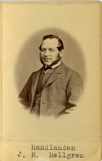 Text på kortets baksida: "Handlanden J.H. Hellgren".