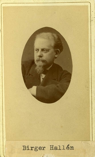 Text på kortets baksida: "Redaktör Birger Hallén".