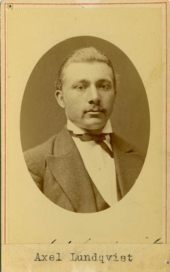 Text på kortets baksida: "Järnhandlaren Axel Lundqvist, f. 1851d. 1917".