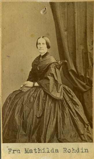 Text på kortets baksida: "Fru Matilda Rohdin, make till Adolf R.".