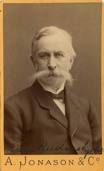 Text på kortets baksida: "Överste Axel Rudenskiöld f. 1829 d. 1914. Chef Boh. reg. T. f. 1882-1885. Chef 1885-1890".