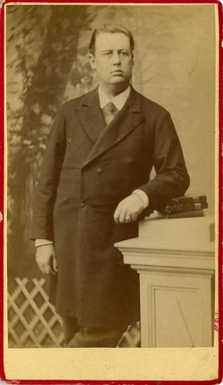 Text på kortets baksida: "Johan Radhe. Död i Amerika. Bror till fröken Anna Radhe".