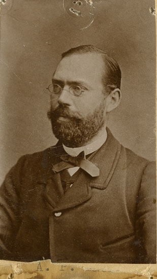 Text på kortets baksida: "Tändsticksfabrikör A. P. Zachau, f. 1829 d.1899".