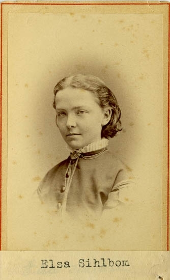 Text på kortets baksida: "Elsa Sihlbom, f. Hjorth".