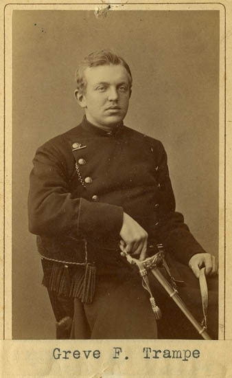Titel: Text på kortets baksida: "Greve Adam Fredrik af Trampe, f. 1854. Boh. reg.".