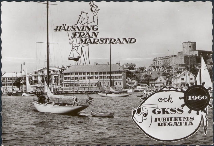 Tryckt text på kortet: "Hälsning från Marstrand och 1960 GKSS Jubileums Regatta".