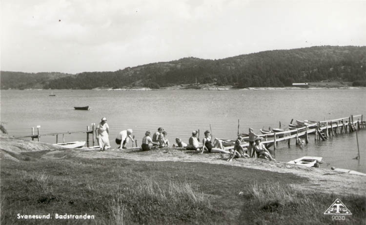 Tryckt text på kortet: "Svanesund. Badstranden."
