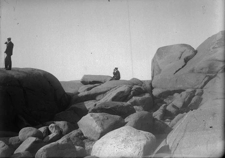 Enligt text som medföljde bilden: "Eric, Calle vid Kramkistesund 17/9 1899. Lysekil Stångehufud. Hugo Hallgren".