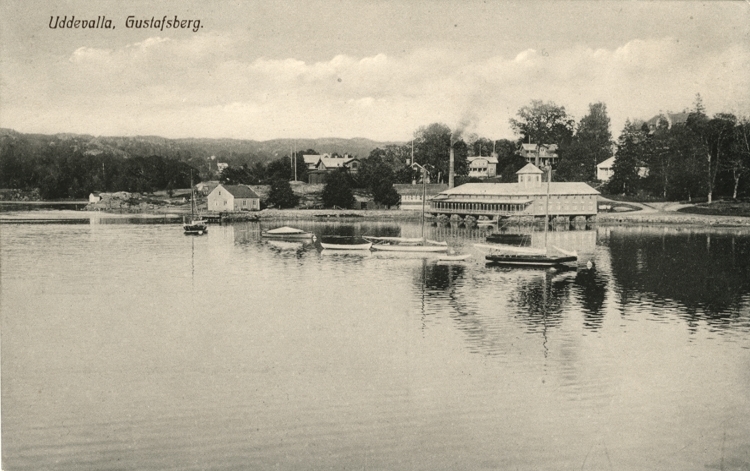 Tryckt text på vykortets framsida: "Gustafsberg."