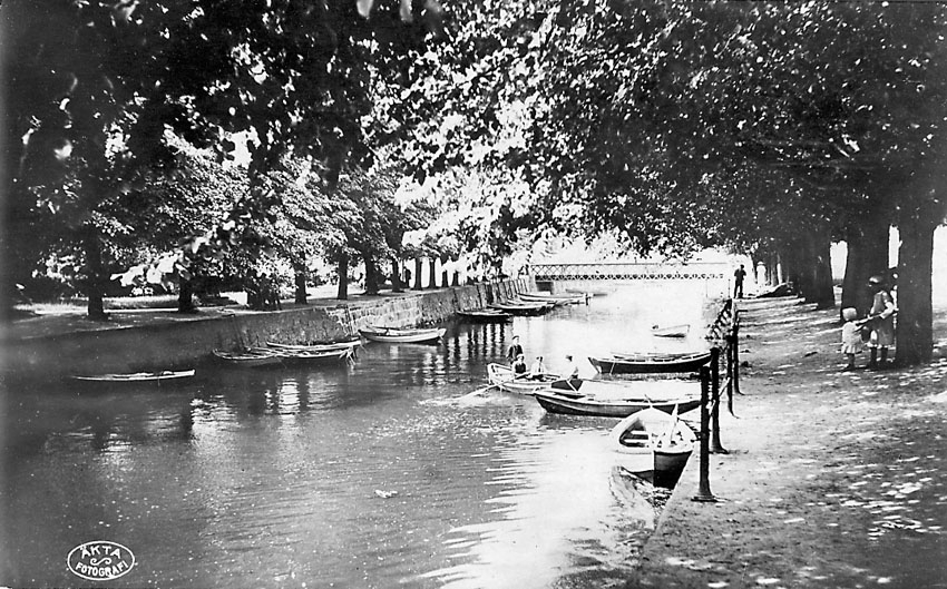 Tryckt text på vykortets baksida: "Uddevalla Motiv från Bäfveån".