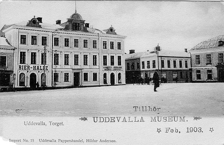 Tryckt text på vykortets framsida: "Uddevalla Torget".