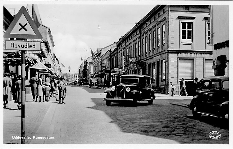 Tryckt text på vykortets framsida: "Uddevalla Kungsgatan".