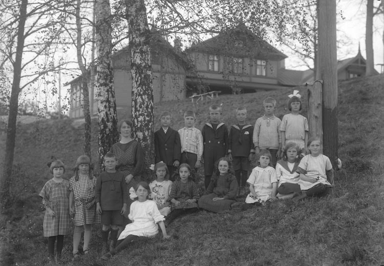 Enligt fotografens noteringar: "Fru Molldén skolbarn omkring 1910."
