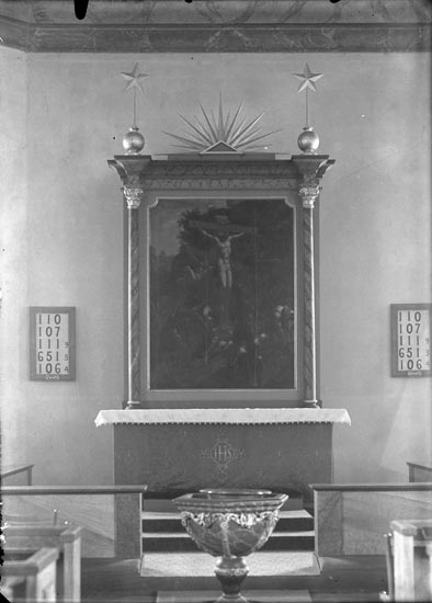 Enligt fotografens anteckningar: "1937, april, 13. Altaret i Foss Kyrka".