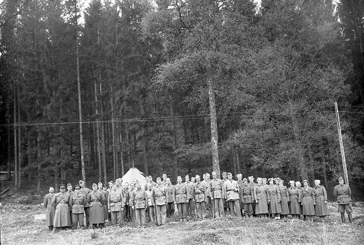 Enligt fotografens journal nr 7 1944-1950: "Hemvärnsövning vid Dafinseröd Ucklum".