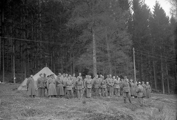 Enligt fotografens journal nr 7 1944-1950: "Hemvärnsövning Korum vid Dafinseröd Ucklum".