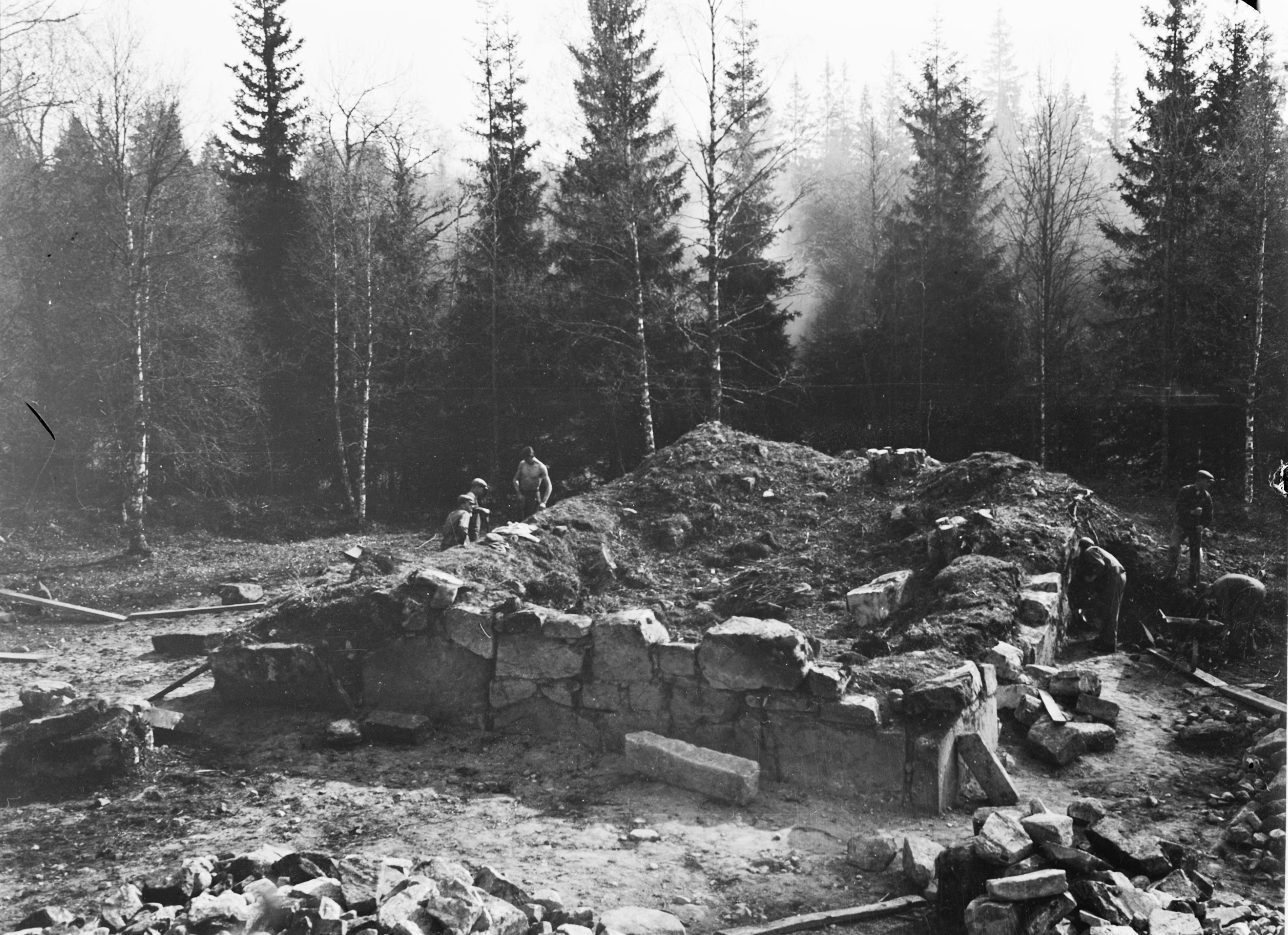 Beskrivning: Kyrkoruinen från väster. Under utgrävning.